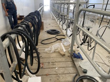 نصب وراه اندازی واستارت دستگاه شیر دوشی 12*2 وستفایایی یا گسترشی شیشه رکورد باسیستم خط شیر63استیل 304 1/5میل کاملاً استیل دیسک والو رینگ شده برای بالا بردن سرعت دوشش وخط آب 51کاملاً استیل 1میل304 وخط وکیوم63و90ترکUPVC